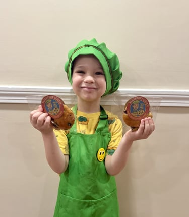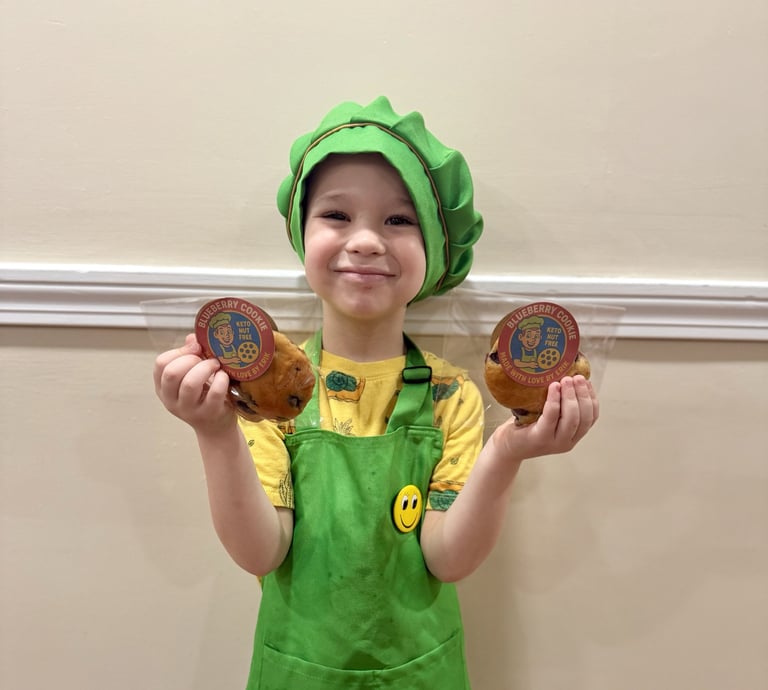 Cooking with Erik is a heartwarming brand featuring a 4-year-old boy named Erik who learns to cook, bake, and spread joy through food and laughter. The website should reflect the fun, playful, and family-friendly nature of the brand, while offering an easy way to watch videos, learn about the mission, and order keto cookies online.